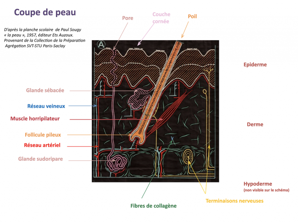 Les phanères (cheveux, poils, écailles, griffes…) sont des structures issues de la couche externe de la peau, l’épiderme. Ils sont caractérisés par leur teneur en une protéine fibreuse, la kératine. La kératine est capable de former des filaments en s’enroulant. La rigidité est assurée par des liaisons entre acides aminés soufrés comme les cystéines.