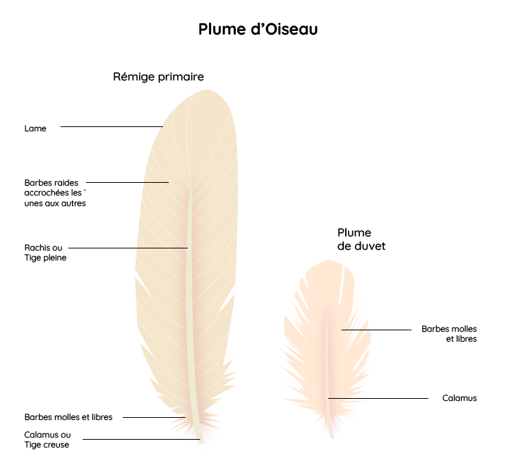 Il existe une autre sorte de plumes, le duvet (plumes légères dont les barbes ne sont pas enchevêtrées) ou de petites plumes (les plumules).